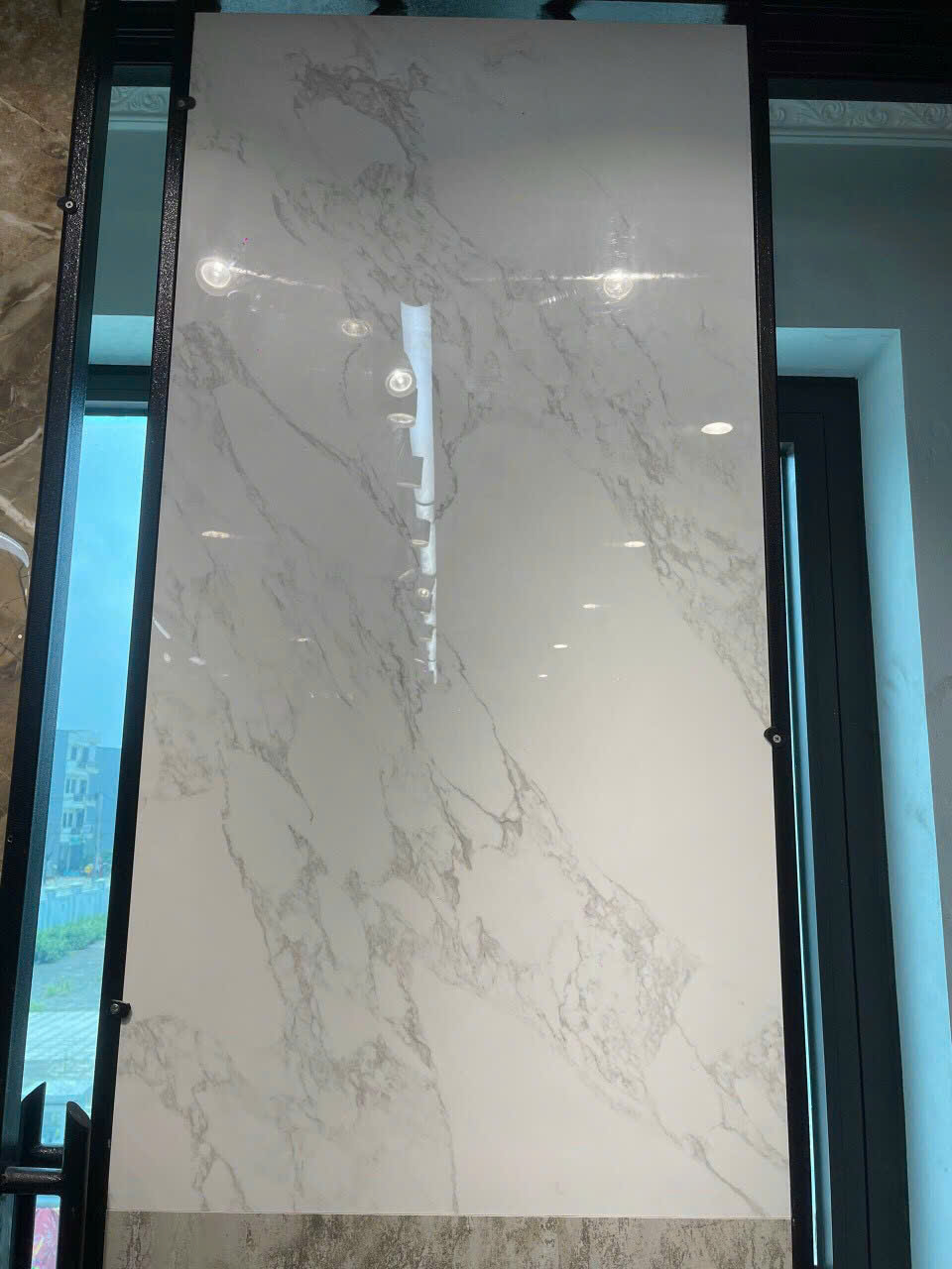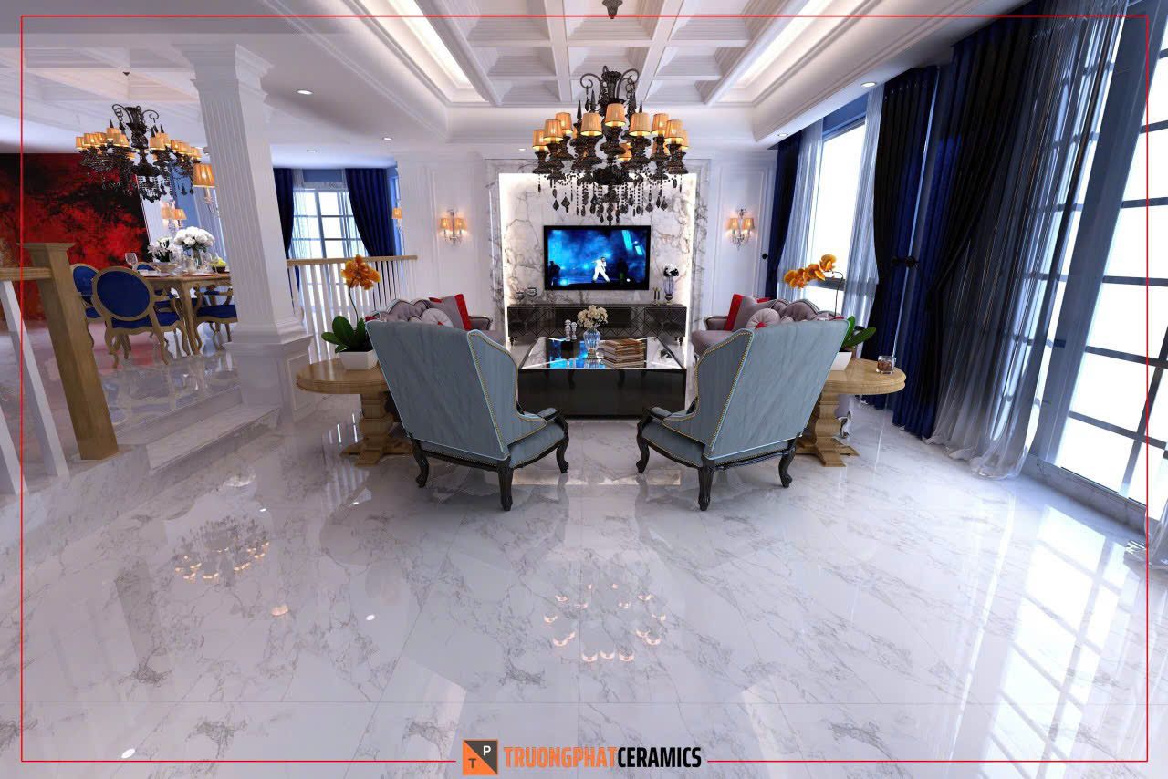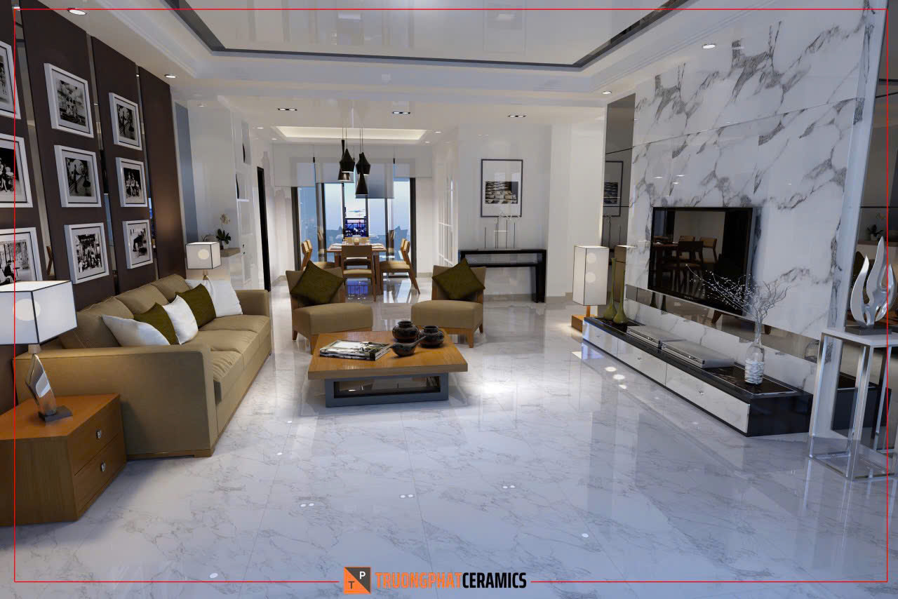 Kích thước 60x120cm giúp giảm số lượng đường ron (mạch gạch), tạo hiệu ứng liền mạch và mở rộng không gian một cách thị giác. Đây là lựa chọn tuyệt vời cho các không gian như phòng khách, sảnh, phòng ngủ, showroom, văn phòng cao cấp, v.v.