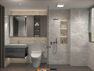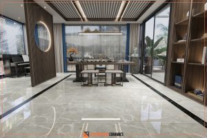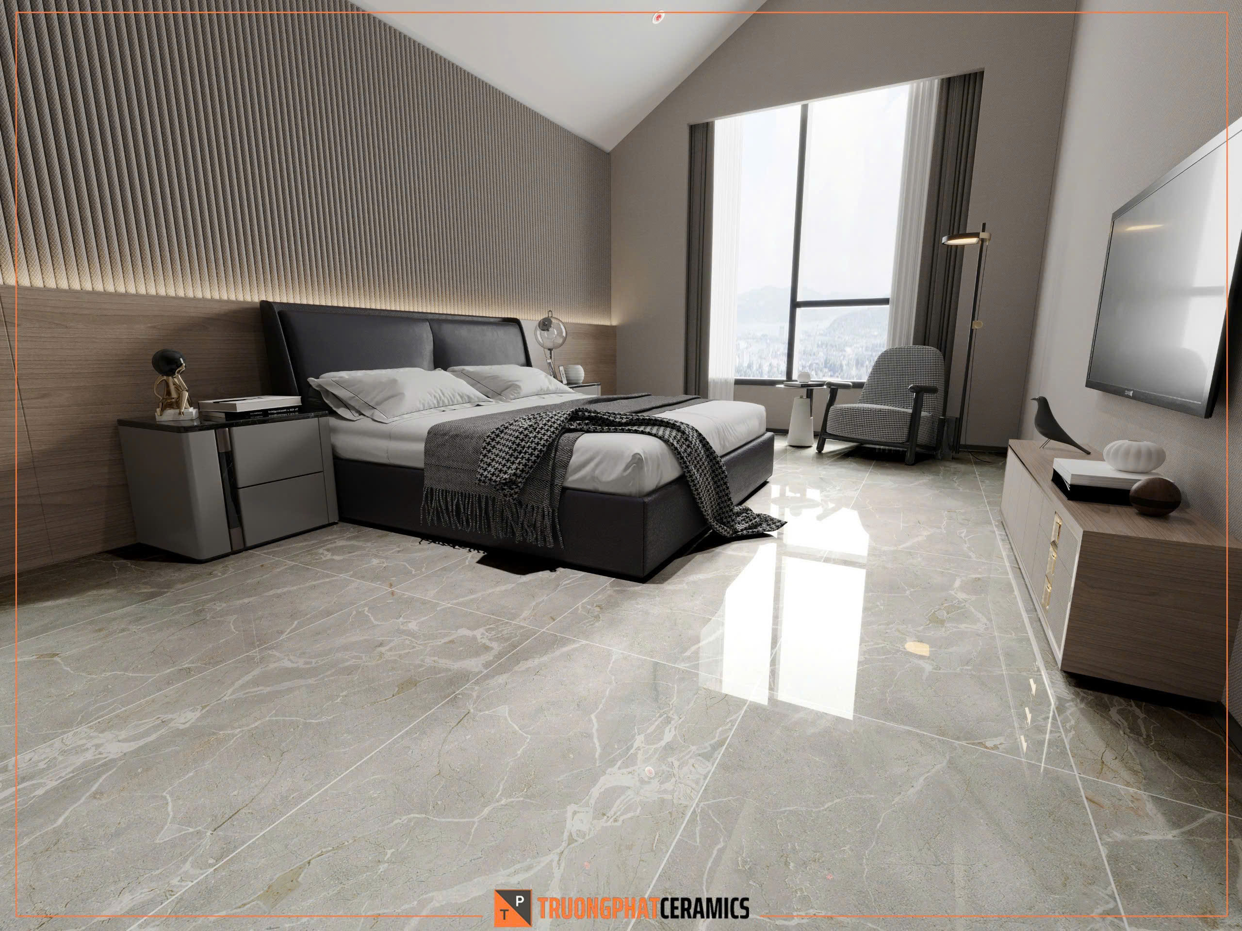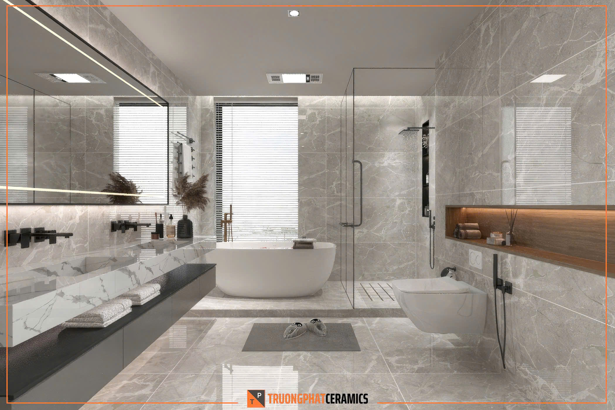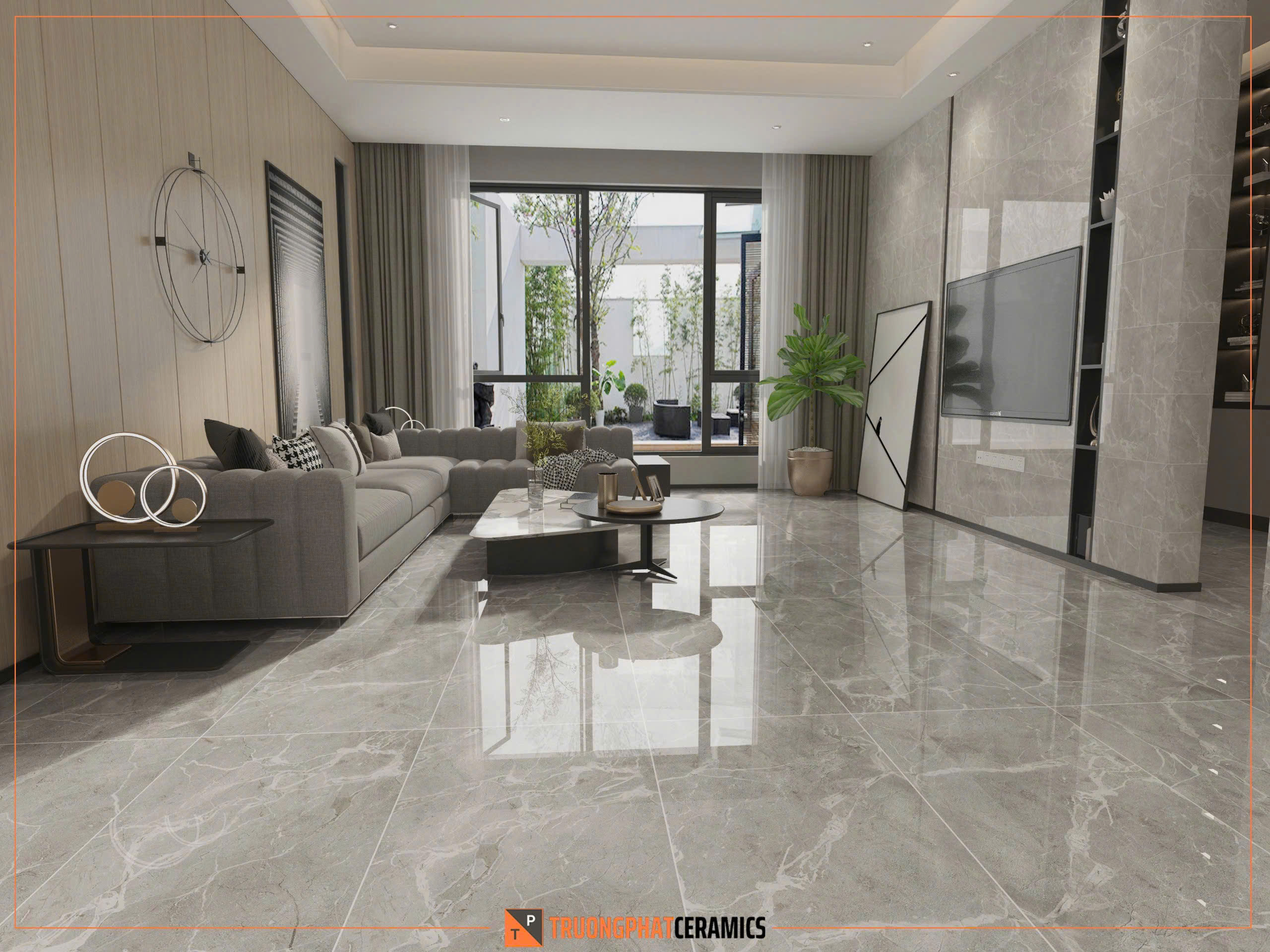 Gạch khổ lớn 60x120cm giúp giảm thiểu đường ron, tạo cảm giác không gian rộng rãi, liền mạch và sang trọng hơn.