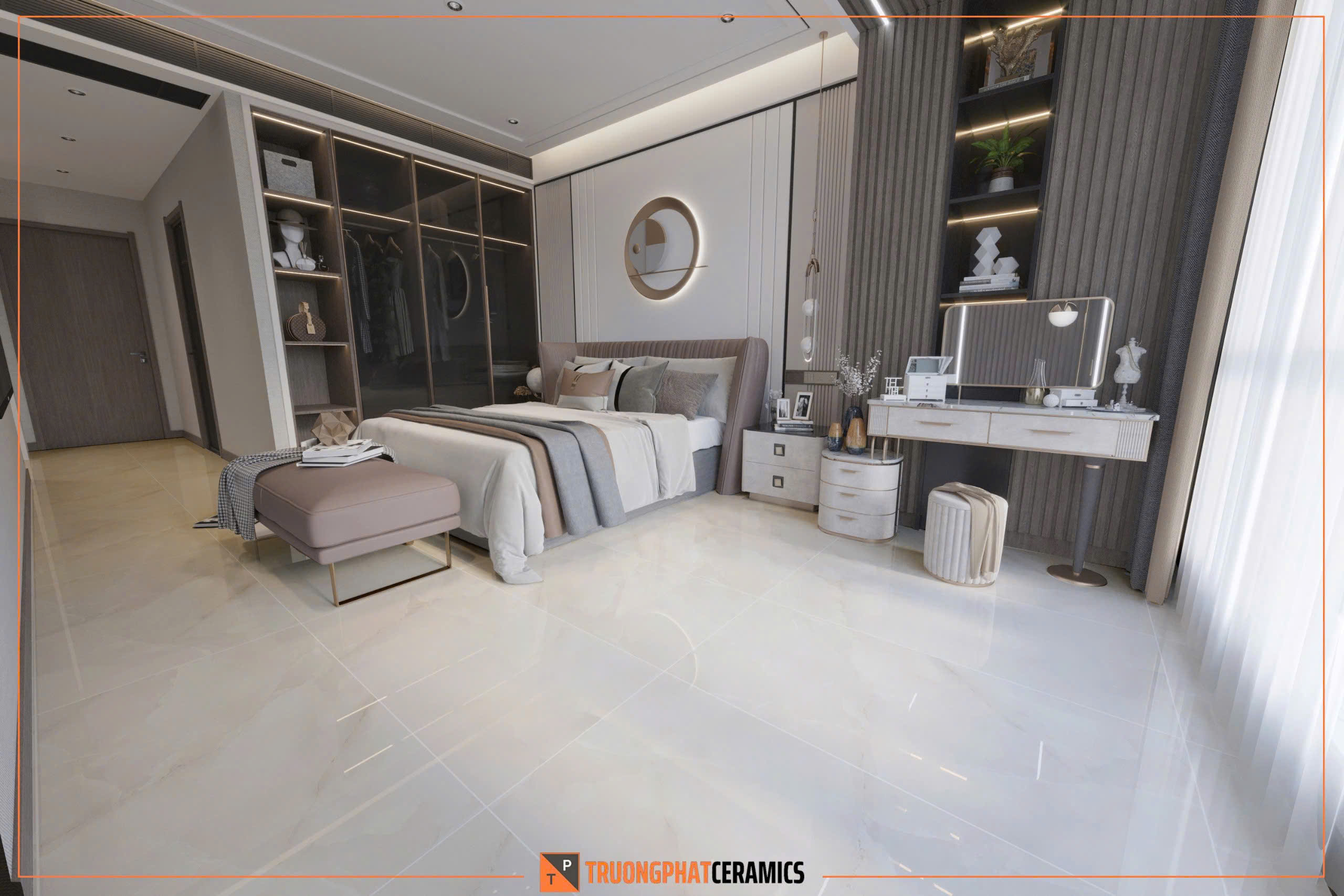 🔸 Bề mặt bóng kính cao cấp: Tăng độ phản chiếu ánh sáng, giúp không gian rộng và sáng hơn. Đồng thời dễ lau chùi, chống bám bẩn hiệu quả.
