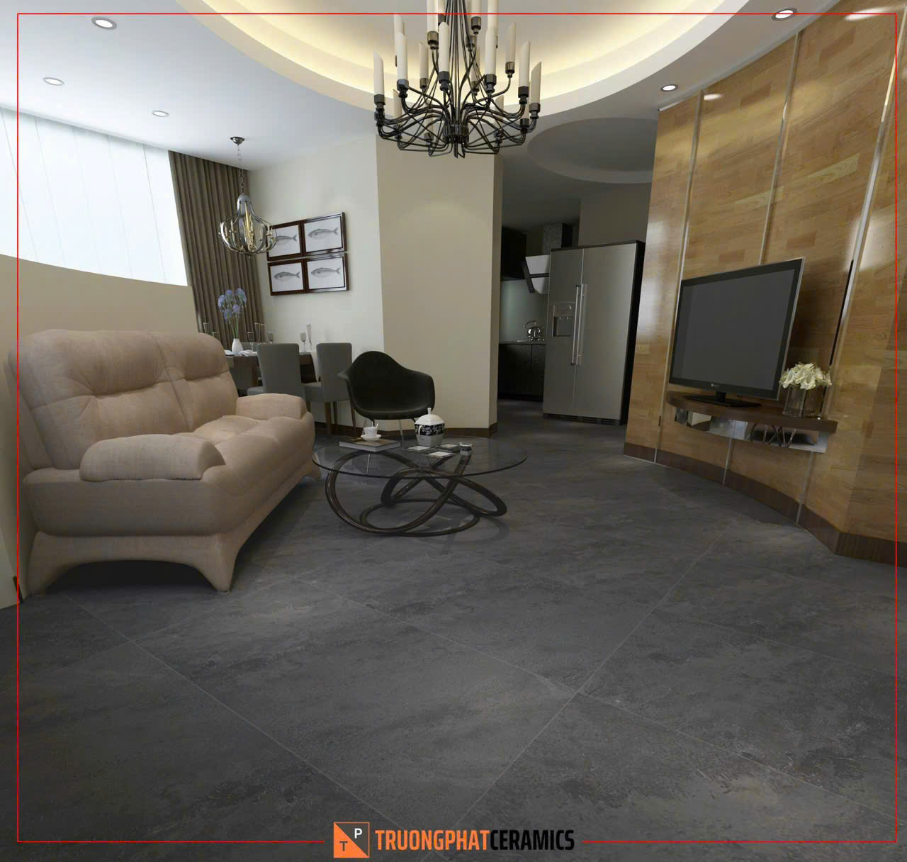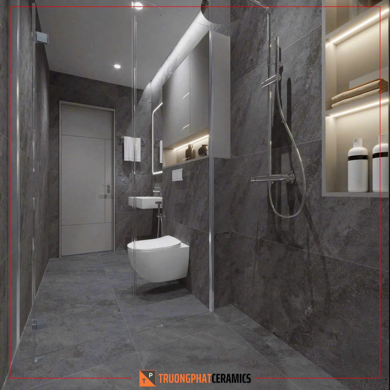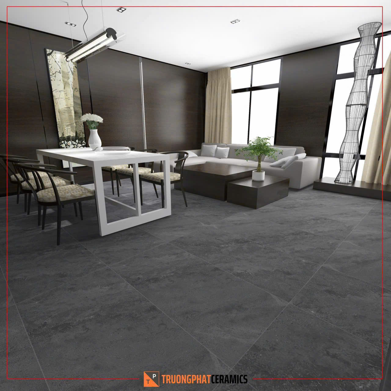 Với kích thước lớn 60x120cm, gạch Ruby Grey giúp không gian trở nên rộng rãi, liền mạch và đẳng cấp hơn.
