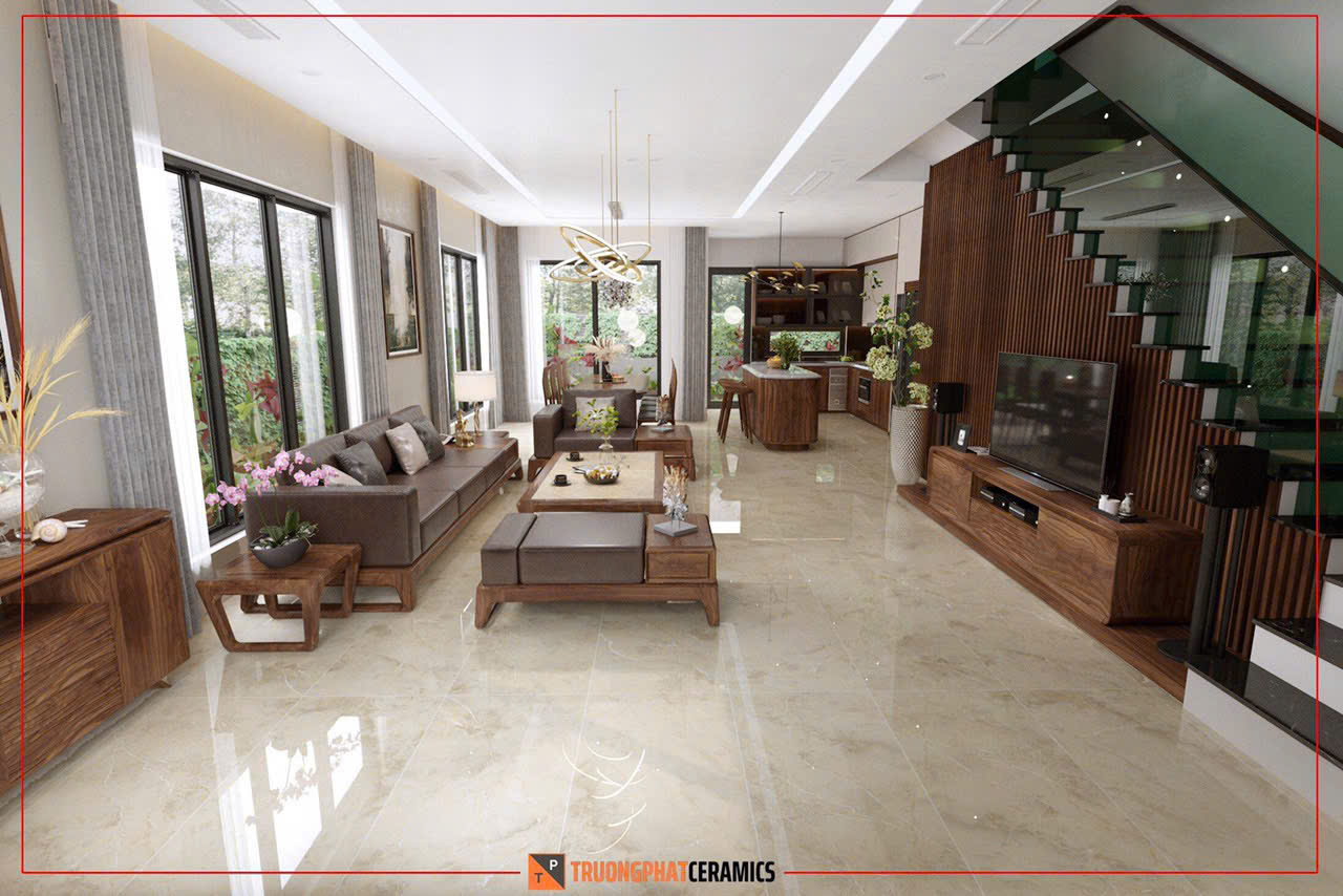 ✅ Kích thước lớn – mở rộng không gian: Gạch 60x120cm giúp không gian trở nên rộng rãi, thoáng đãng hơn so với các dòng gạch kích thước nhỏ.