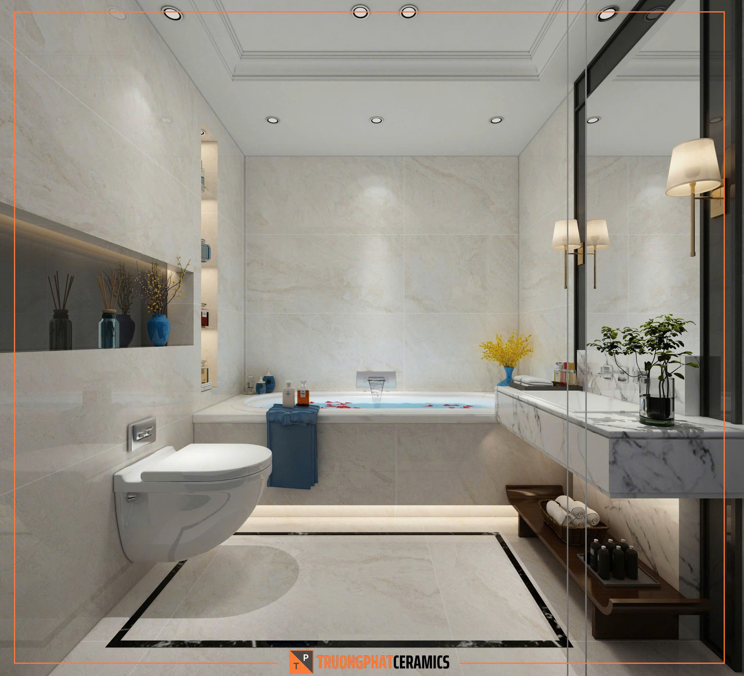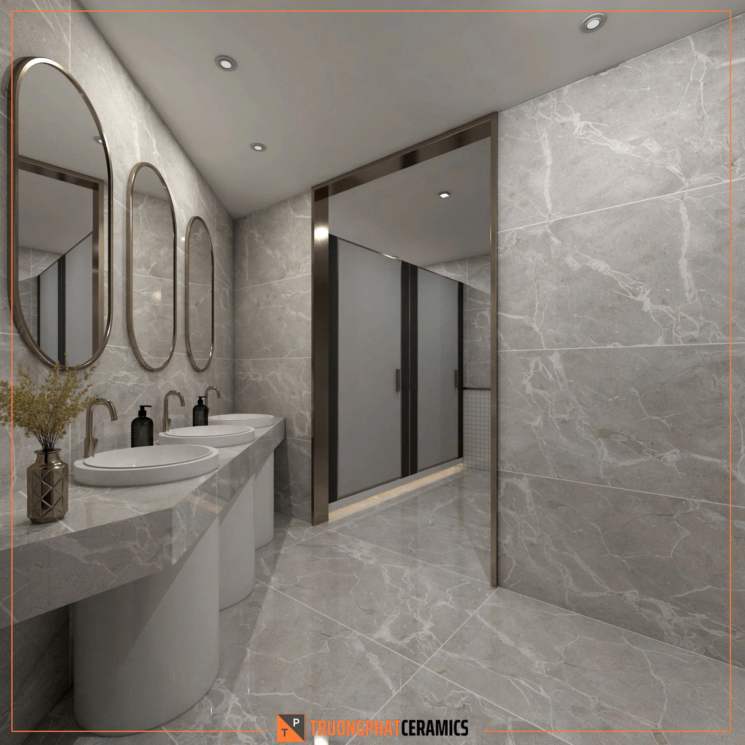Kích thước 60x120cm giúp mở rộng không gian, giảm đường ron, tạo cảm giác liền mạch – rất phù hợp với các công trình biệt thự, khách sạn, trung tâm thương mại, showroom hoặc không gian nhà ở cao cấp.