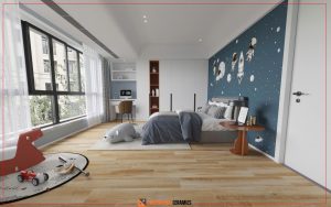 Gạch lát nền phòng khách, phòng ngủ, phòng bếp.