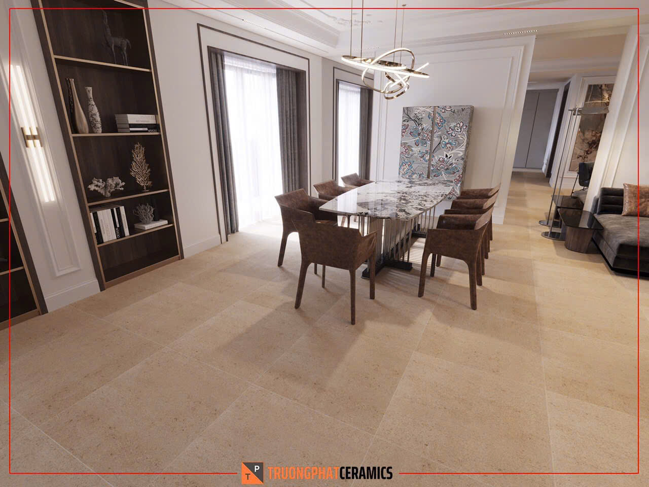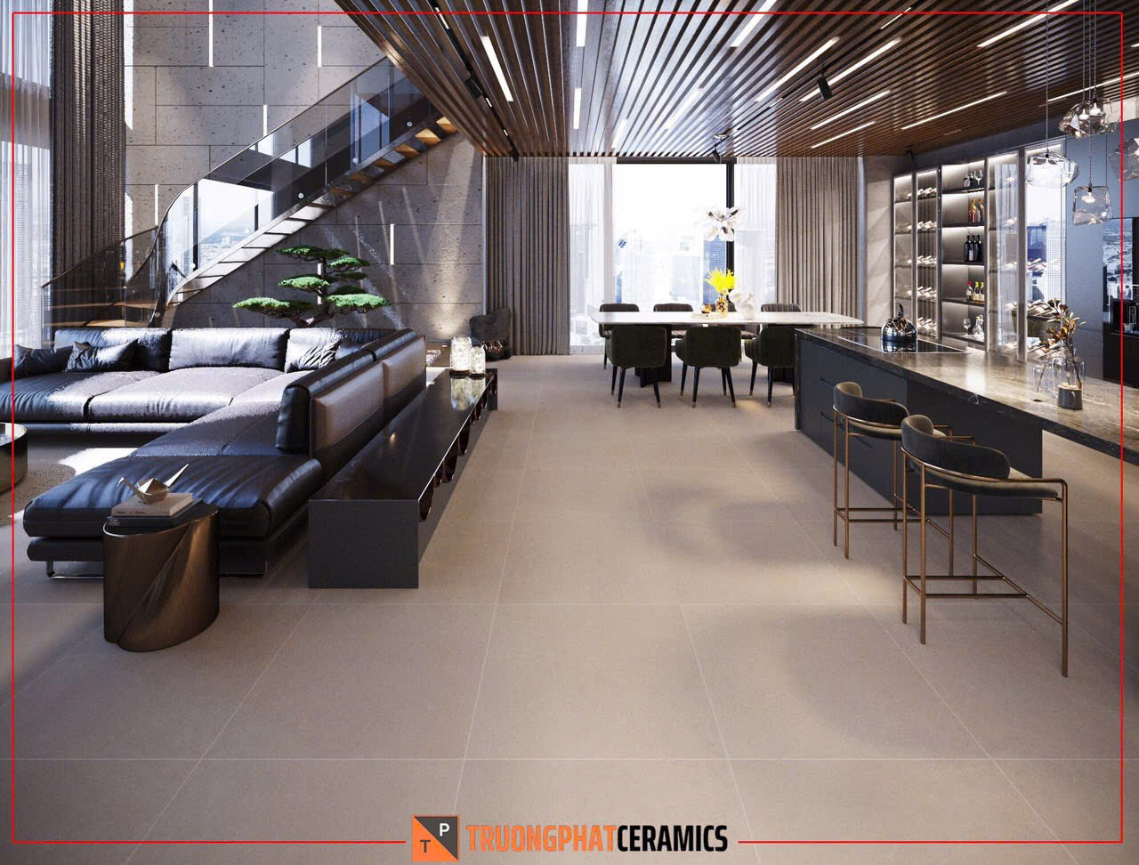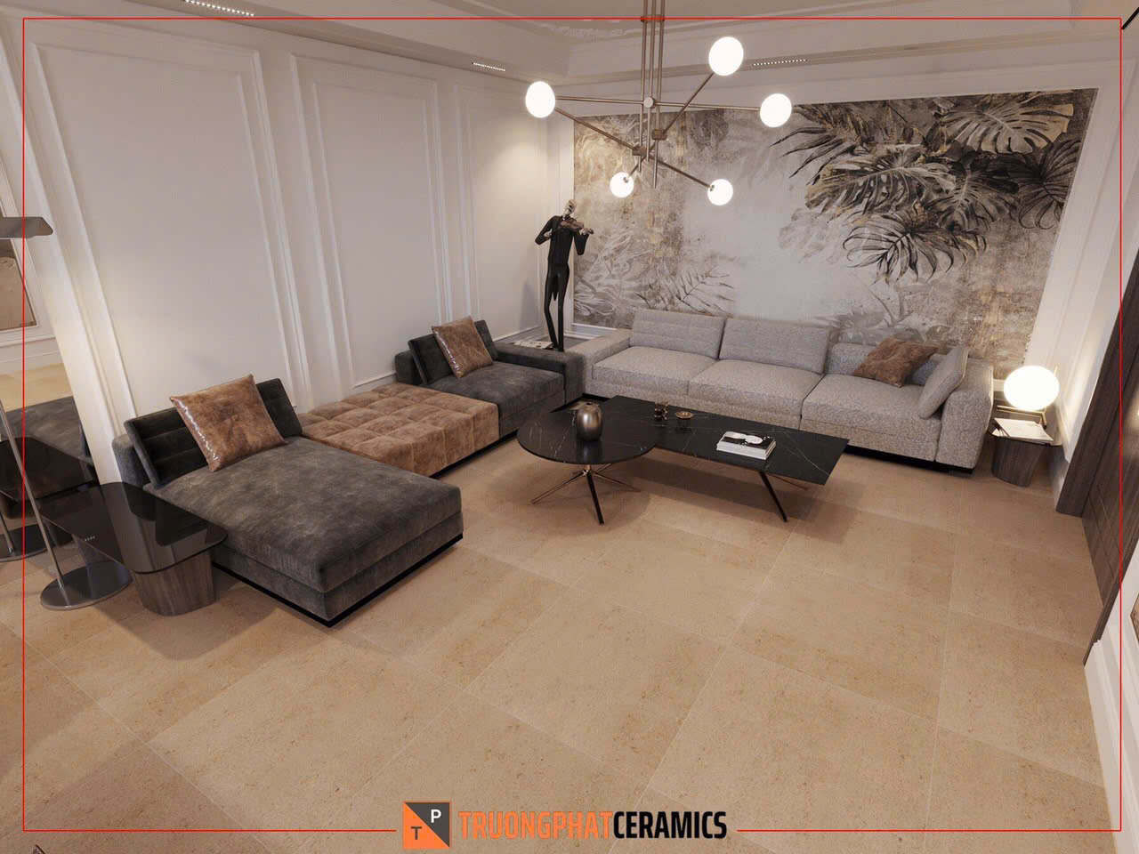 Với kích thước lớn 80x80cm, gạch giúp không gian rộng rãi, ít đường ron, tạo sự liền mạch và đẳng cấp cho công trình.