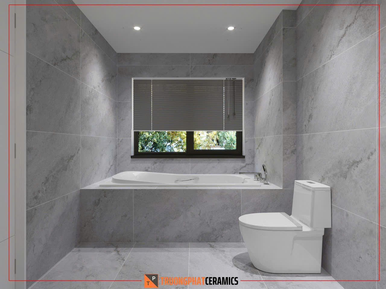 Với tông xám trung tính, gạch dễ phối cùng các gam màu khác như trắng, kem, nâu gỗ… giúp tổng thể công trình trở nên hài hòa và đẳng cấp.