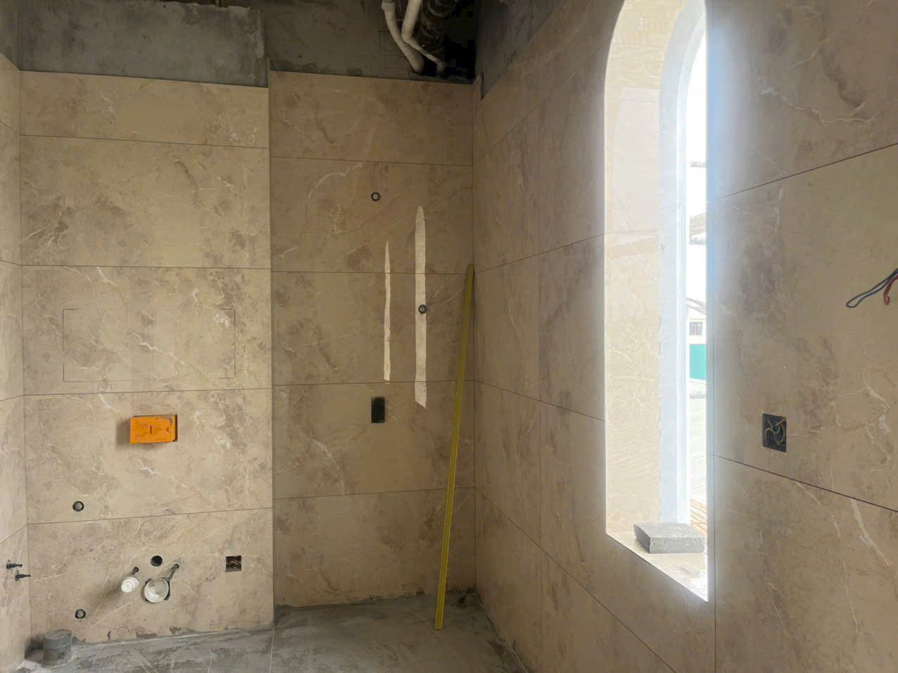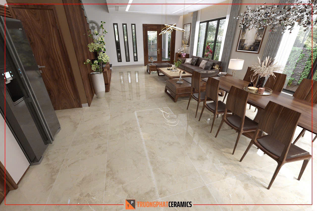 Gạch khổ lớn giúp giảm mạch ghép, tạo hiệu ứng không gian liền mạch và sang trọng hơn.